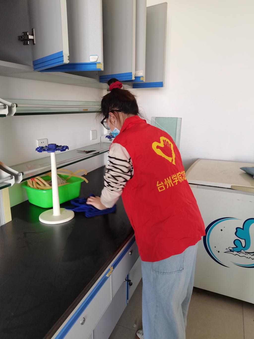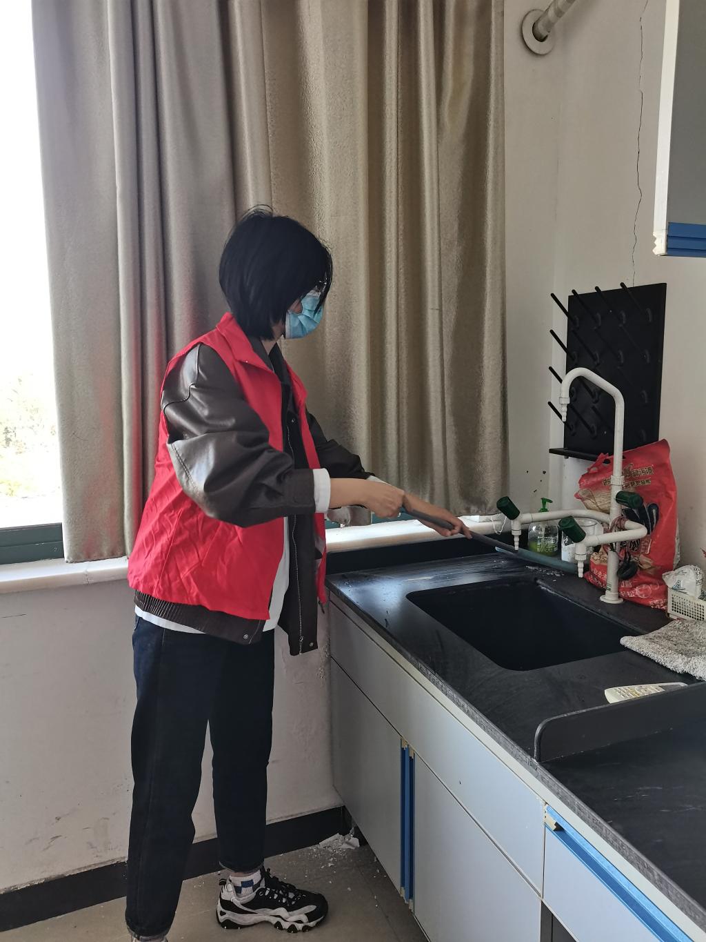 活动伊始,党支部书记王培蕾强调了此次活动的目的,希望每位党员以实际行动传承并弘扬雷锋精神。随后,全体学生党员在生命科学学院的各个实验室开展志愿服务活动。活动中,志愿者们对实验室地面和桌面进行了认真地清扫,并仔细清理了墙面上的各种顽固污渍,大家热情高涨、干劲十足 。