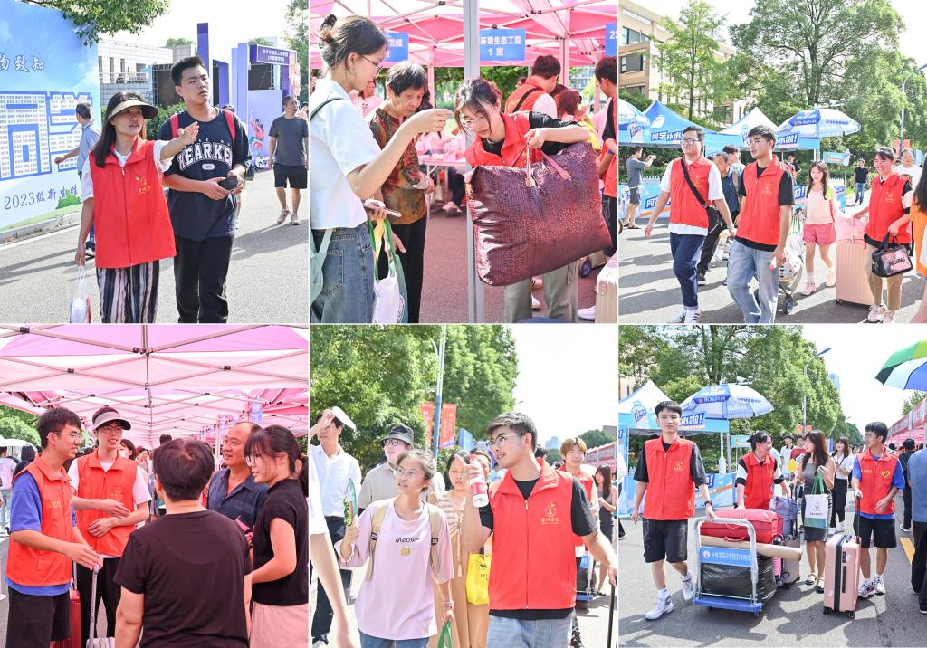 迎新当天,党员志愿者们身穿红马甲,举起学院标识牌,推上小推车为新同学指引方向、答疑解惑。纵使艳阳高照,志愿者们热情不减,一件件接过行囊,快速有序地穿梭在校园之间,将新生送到对应宿舍,以“心”迎新,呈现出踏实奋进、带头示范的当代大学生党员精神风貌。熙熙攘攘的迎新人群,党员志愿者胸前熠熠生辉的党徽,展示了每一位党员高度的责任感和昂扬的精神面貌。