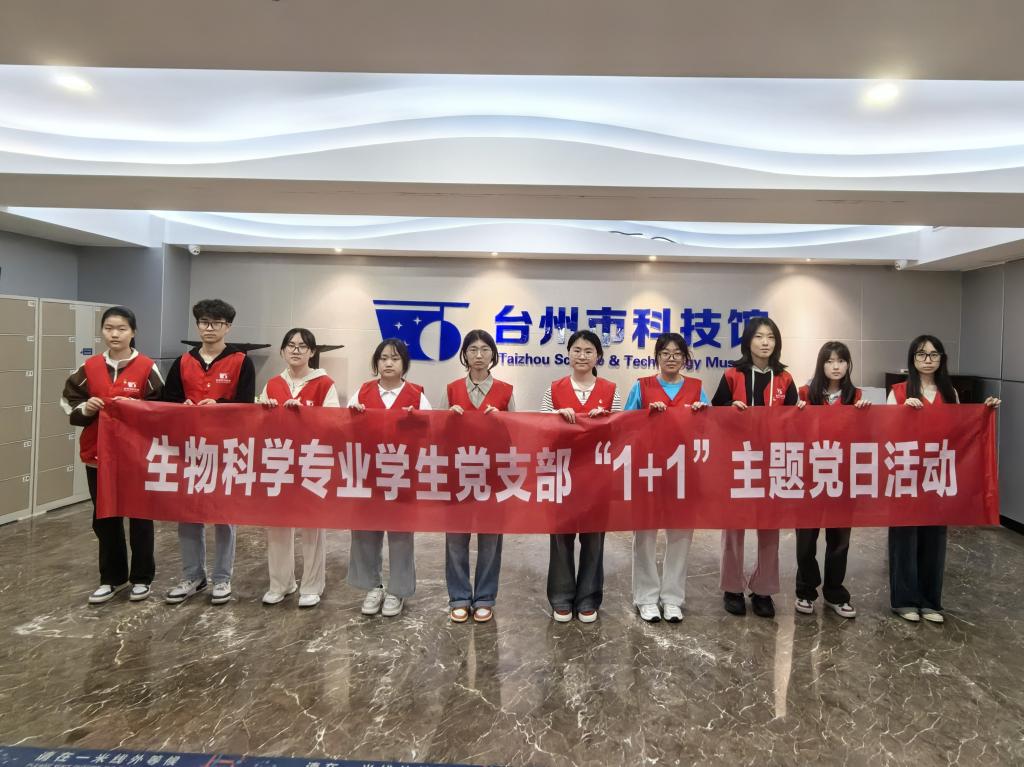 为践行社会主义核心价值观,培养担当奉献精神,4月27日上午,生命科学学院生物科学专业学生党支部前往台州市科技馆开展“科技之光,志愿同行”“1+1”主题党日志愿服务活动。