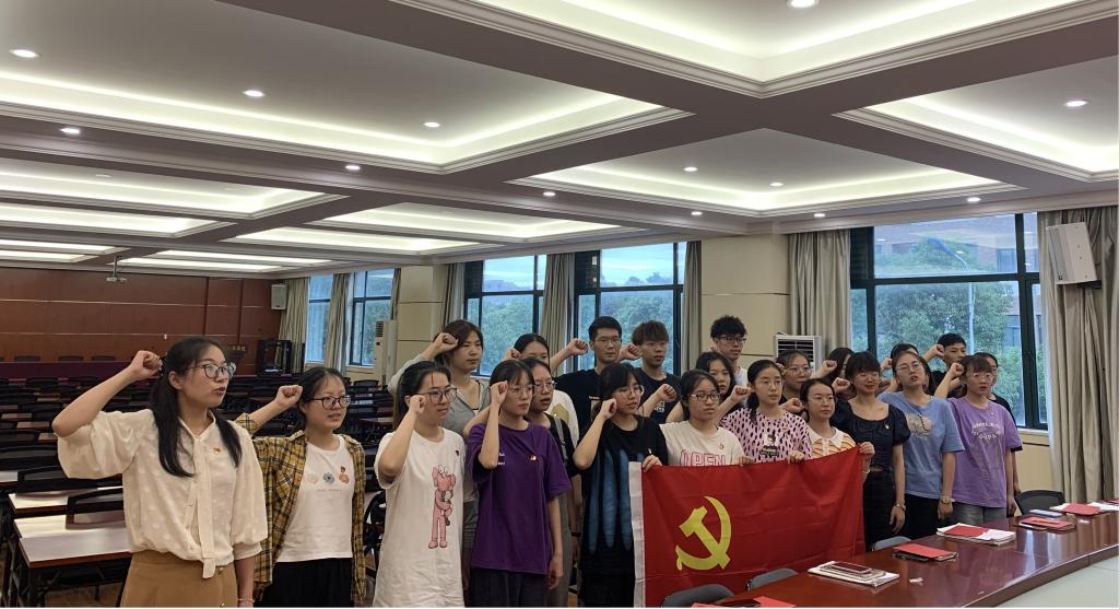 会上,同志们集中学习《习近平科学的思维方法在浙江的探索与实践》和习近平给北京大学的留学生们的回信,大家就目前的学习生活工作重点自由讨论交流。于“七一”建党的喜庆时刻,支部书记王培蕾发放政治生日贺卡,与各党员同志一齐迎庆建党华诞,不忘初心,牢记使命。在这之后,每位同志结合自身实际情况向党表忠心,说真话,诉真情,表达永远跟党走的决心。最后全体成员重温了入党誓词,王培蕾带领全体党员举起右拳庄严宣誓。入党誓词是行动指南,是共产党人的座右铭,只有在前进路上不断重温,终身践行,不断校正航向,方能行稳致远。