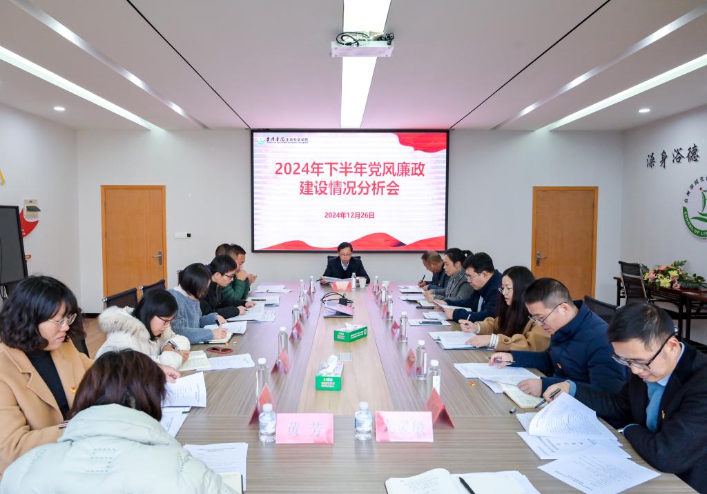 12月26日,生命科学学院召开2024年下半年党风廉政建设情况分析会。校党委副书记项凤日,校纪委委员、学工部(学生处、人民武装部、就业服务中心)部长(处长、主任)杨启富出席指导,学院领导班子成员、党委委员与纪委委员参加,会议由学院党委书记郑晓莉主持。