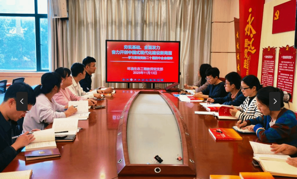 为深入学习党的二十届四中全会精神,研究党建业务融合发展,推进清廉支部建设,11月13日,生命科学学院环境生态工程教师党支部组织开展“深学细悟强武装 清廉护航促发展”主题党日活动。