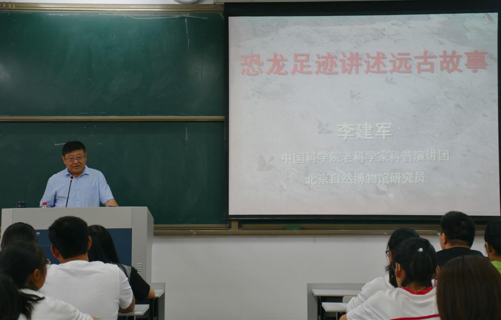 李建军研究员长期从事以恐龙为主的古脊椎动物学的科研、科普和展览等工作,并主持过大型野外恐龙化石的发掘工作,完成了国内20多个自然类博物馆地质古生物展览的内容设计和布展指导工作。本次讲座从恐龙的类型、恐龙足迹的形成、恐龙足迹的野外考察等方面展开,讲座语言平实风趣,讲解激情满怀,展现老一辈科技工作者的别样风采,使同学们在和谐轻松的氛围中,真切地体会到恐龙的魅力、科学的力量。