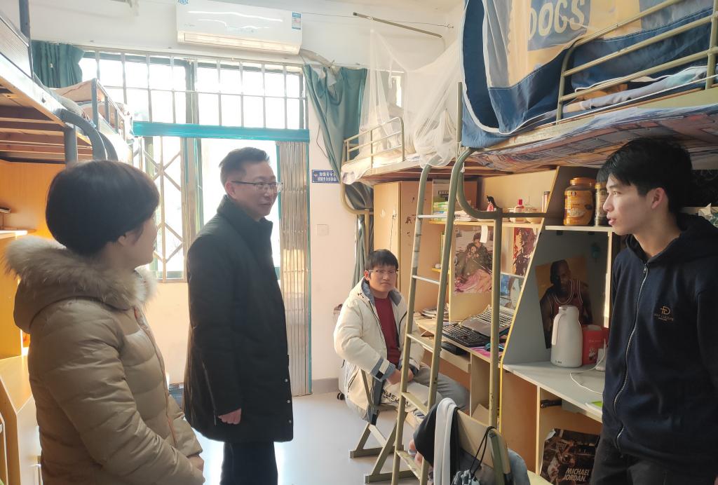 12月30日下午,校党委委员、宣传部长金松在生命科学学院党委副书记徐敏和学工办主任翁添富的陪同下,走访了生命学院12号楼109、110寝室,在新年即将来临之际,给同学们送上新年祝福。