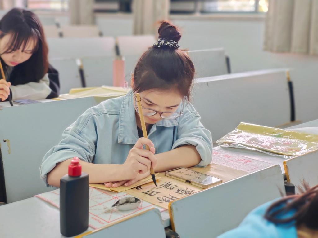 平铺一张纸,提笔行流云。毛笔组的选手们细细品味着汉字的艺术魅力,尽其所能地展现自身的书法才能,挥毫泼墨间,一幅幅或端正俊丽或遒劲有力的毛笔字书法作品呈现在眼前。