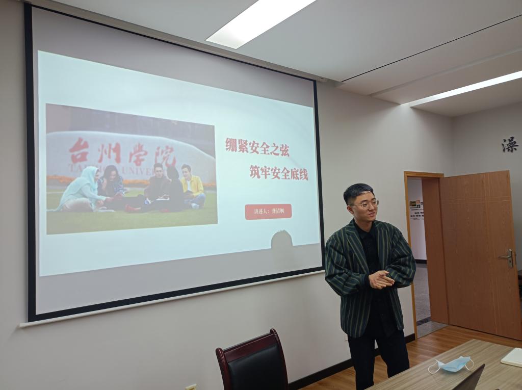 杨启富作总结发言,希望各位学工同仁平时加强交流,共同提升安全宣传、安全隐患发现以及处置能力,本着安全无小事、未雨绸缪、防患未然的责任意识,共同努力营造平安和谐的校园环境。