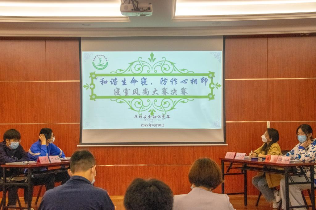 4月30日下午,生命学院 “和谐生命寝,防诈心相印”寝室风尚大赛决赛在学院大会议室举行。学院党委副书记徐敏、学工办主任翁添富出席,决赛由生活实践部部长杨诗莹主持。
