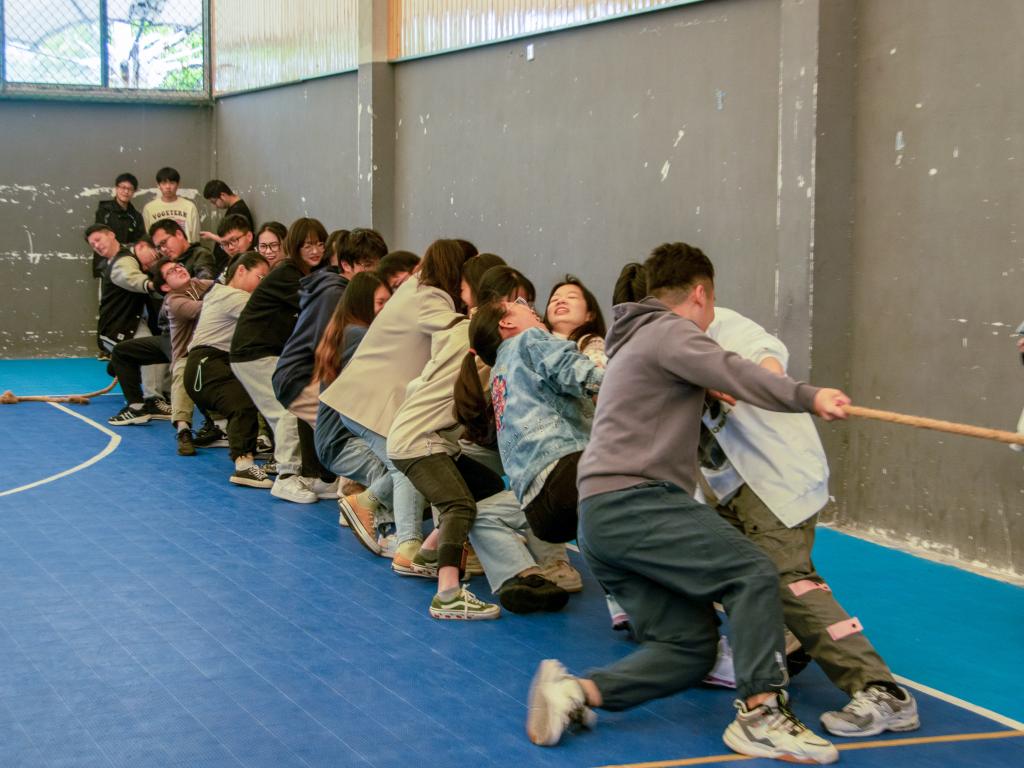 本次趣味运动会于4月17日至5月8日期间的每周周末举行,共设“投包击人”“定点投篮”“手忙脚乱”“拔河”“10人11足”“20*50接力赛”等六个团体趣味项目,比赛形式以积分赛与计时赛为主,各代表队以班级为单位进行比赛,共有22支队伍参加,累计800多人次。在“10人11足”中,同学们齐心协力,步伐一致,赛出别样乐趣;在“20×50接力赛”中,大家密切配合,与时间赛跑,感受速度与激情;在“拔河”中,各团队众志成城,努力拼搏,体悟力量对决;在“手忙脚乱”中,队员们随机应变,思考如何让手脚更加协调,体验脑力与体力的双重对决……每一项目的比赛都精彩纷呈,扣人心弦,所有人都被运动场上洋溢着的勃勃朝气所感染。胜利时的呐喊、失利时的鼓舞,每个人都在集体中发挥着自己的力量。最终,各团队凭借默契的配合以及坚持不懈的精神获得了相应的荣誉,趣味运动会在欢声笑语中圆满落幕。