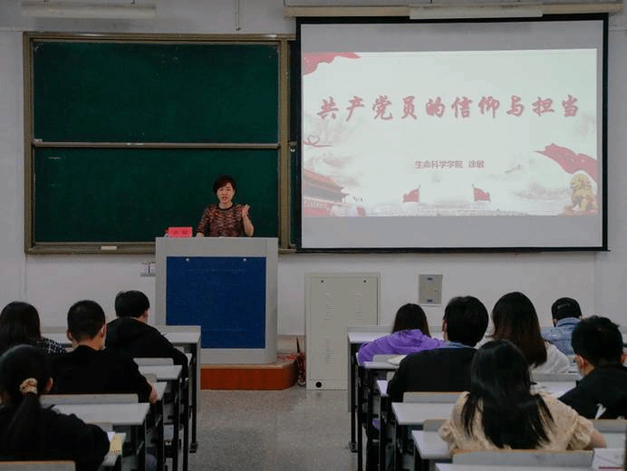 5月21日晚,生命科学学院党委副书记、纪委书记徐敏在2-203为学院第十六期业余党校学员上《共产党员的信仰与担当》专题党课,本期业余党校全体学员参加。