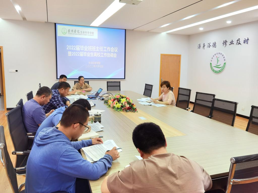 6月7日,生命学院在D-470办公室召开2022届毕业班班主任工作会暨离校工作协调会,学院党委副书记徐敏主持,全体毕业班班主任和辅导员参加。