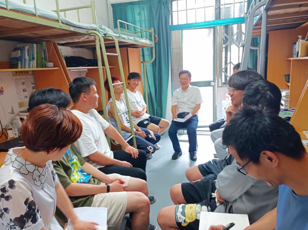 6月16日下午,校党委委员、宣传部长金松走访学生寝室,看望生命科学学院2021级生物制药专业学生,与同学们促膝长谈,关心慰问学习生活情况。生命学院党委副书记徐敏、学工办主任翁添富和专业辅导员张本金陪同走访。