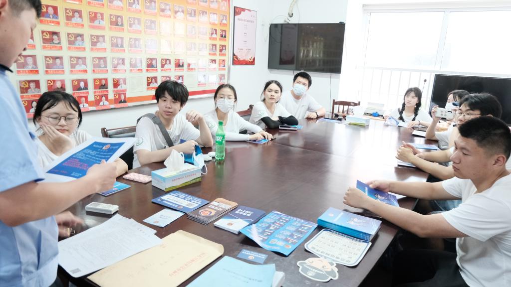 随着网络科技的高速发展,诈骗手段也是五花八门。辖区民警王志豪通过讲解各类真实发生在群众身边的受骗案例为实践队员们普及常见的诈骗手段,包括网络贷款类、冒充亲友身份类、兼职刷单类、买卖游戏账号类、虚假“通缉令”“杀猪盘”等不同类型诈骗。