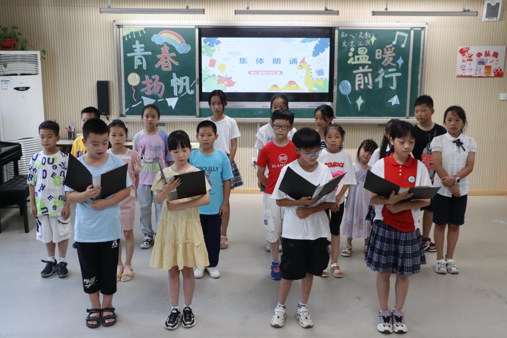 7月9号上午,“知心支教”暑期社会实践队带领东山小学学生在学校音乐教室举行“扬帆起航,温暖前行”文艺汇演,汇报六天来的学习成果,邀请家长参加此次文艺汇演。