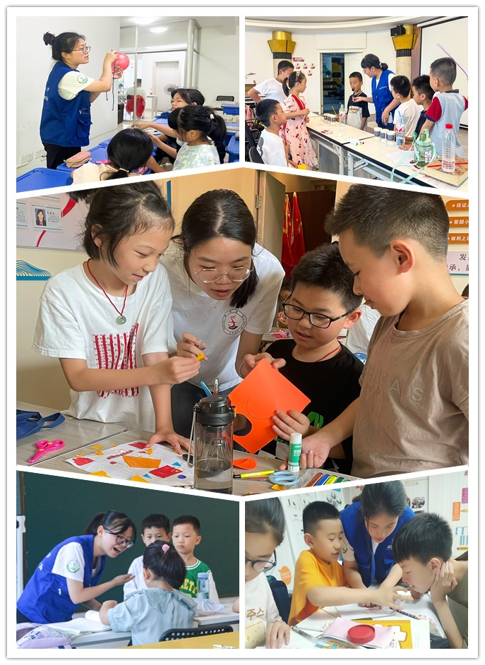 为满足“青苗学堂”暑托班7日至8日两天的教学需求,实践队分成两支小分队,进驻金胜社区和龙域天城、丽州一品和金水湾等4个教学点进行授课,给小朋友们送去“会开花的纸”“反冲火箭”“探秘声音”“遗传的证据”“水喷泉”等科学实验课。在一堂堂以科学实验为基础的STEM课堂中,队员们以驱动性问题为导向,引导孩子们开动脑筋,以团结协作方式共同找寻科学密码,沉浸式体验科学实验带来的欢愉,激发了孩子们强烈的好奇心和探索科学的强大动力,让孩子们在轻松快乐的学习氛围中收获科学知识、感受科学魅力、提升科学素养。课堂结束后,孩子们簇拥着和蔼可爱的小老师们,争先恐后地诉说各自的奇思妙想。
