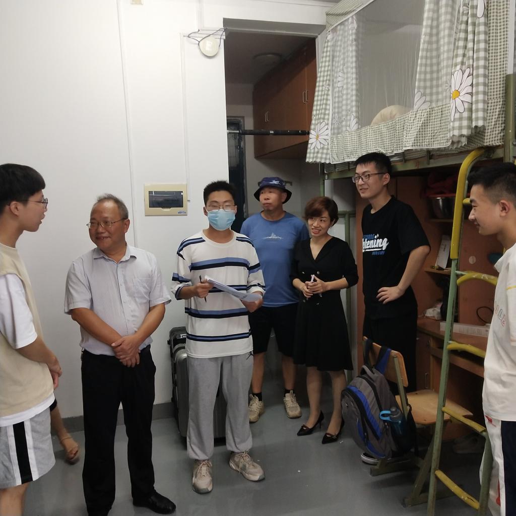 当日下午,学院领导携班主任、辅导员、班助走访寝室,与新生亲切交谈。“你从哪里来?学校的饭菜还合胃口吗?新寝室还住得惯吗?有什么意见可以尽管提。”没有一丝拘束,有的只是来自“老朋友”般的嘘寒问暖。同时,学院领导鼓励“小萌新”们能尽早适应学校环境,养成良好的生活学习习惯,早日做好大学规划,制定合理奋斗目标。