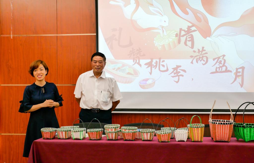 为在硕果累累的美好时节,共庆教师节和中秋节,学院分工会携分团委、学生会共同举办家用篮编织活动。民间艺人林阿芳授课,学院党委副书记徐敏主持,学院部分师生参与。
