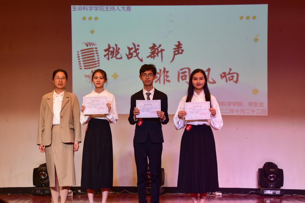 主持人大赛在激动人心的比拼中落下帷幕,最终22科学教育3班郭一、屠佩雯和金雨珊分别荣获一、二、三等奖。本次主持人大赛的顺利举办,既为各位参赛选手提供了一个展示自我的舞台,也为生命学院主持人方正注入了新生力量。