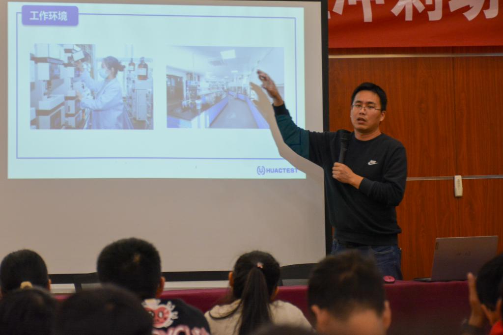 浙江华才检测技术有限公司的总经理、环境工程专业2001届校友汤欢均就企业简介、发展历程、荣誉资质、检测领域、硬件条件、培训体系、工作环境、人才需求及发展前景等方面向在座学生作了详细介绍,认真地解答了同学们关于该公司的行业定位、发展空间、师徒模式、薪资待遇等各种问题。会后,汤欢均与有意向的同学进行了深入的交流,多名同学现场投递了简历。