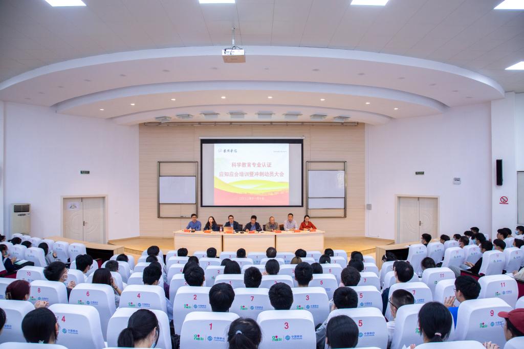 会上,蒋胜韬从科学教育专业基本情况、专业实践教学体系、毕业生培养质量跟踪调查、与基础教育界对接情况和社会服务情况等五个方面作了系统、全面的介绍,就科学教育专业认证应知应会内容作了专题培训,并在文明养成、课堂纪律等方面作了强调。