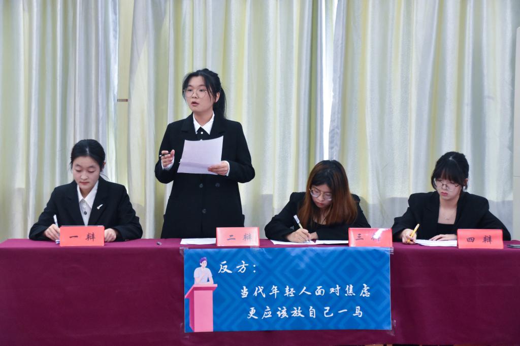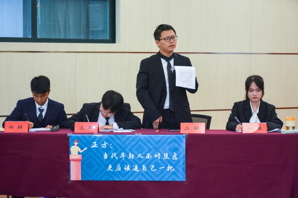 本次辩论赛为同学们提供了一个锻炼思维能力、学会明辨是非的平台,也促使大家对当今社会的问题和现象有更深层次的思考,在增强同学们的团队协作能力,提高班级凝聚力的同时也丰富了大学生活,体现大学生朝气蓬勃的活力。