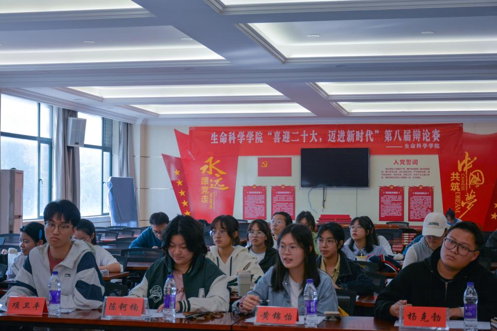 为锻炼和培养同学们的逻辑思维能力和深度思考的习惯,11月20日下午,生命科学学院于D-241举办“喜迎二十大,迈进新时代”暨学院第八届辩论赛,上届辩论赛冠亚军队成员及第十七届团学会主席团成员担任评委。