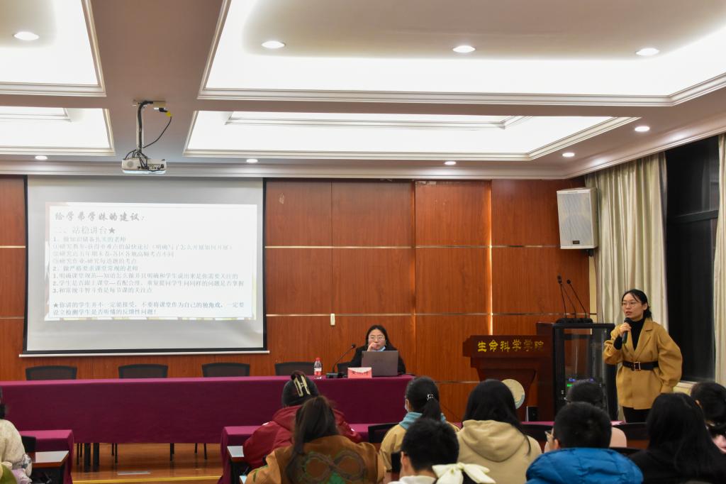 为提高科学教育专业学生的专业认同感,提升学生就业能力,12月10日晚,生命科学学院在学院241会议室举行以“方向比努力更重要,培养自己的核心竞争力”为主题的优秀校友讲座。15级科学教育专业黄佩琦主讲,50名学生代表参加,辅导员张晓主持。