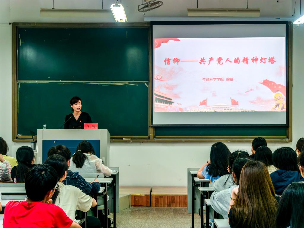 5月14日晚,生命科学学院党委副书记、纪委书记徐敏在2-302为学院第十七期业余党校学员作《信仰——共产党人的精神灯塔》专题党课,业余党校全体学员参加。