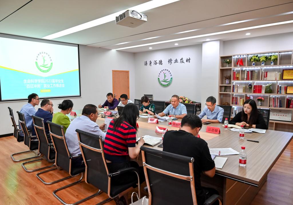 5月19日上午,生命科学学院在D-470会议室召开2023届毕业生“百日冲刺”就业工作推进会,党委书记杨启富出席,各系主任、全体毕业班班主任参加会议,党委副书记徐敏主持。