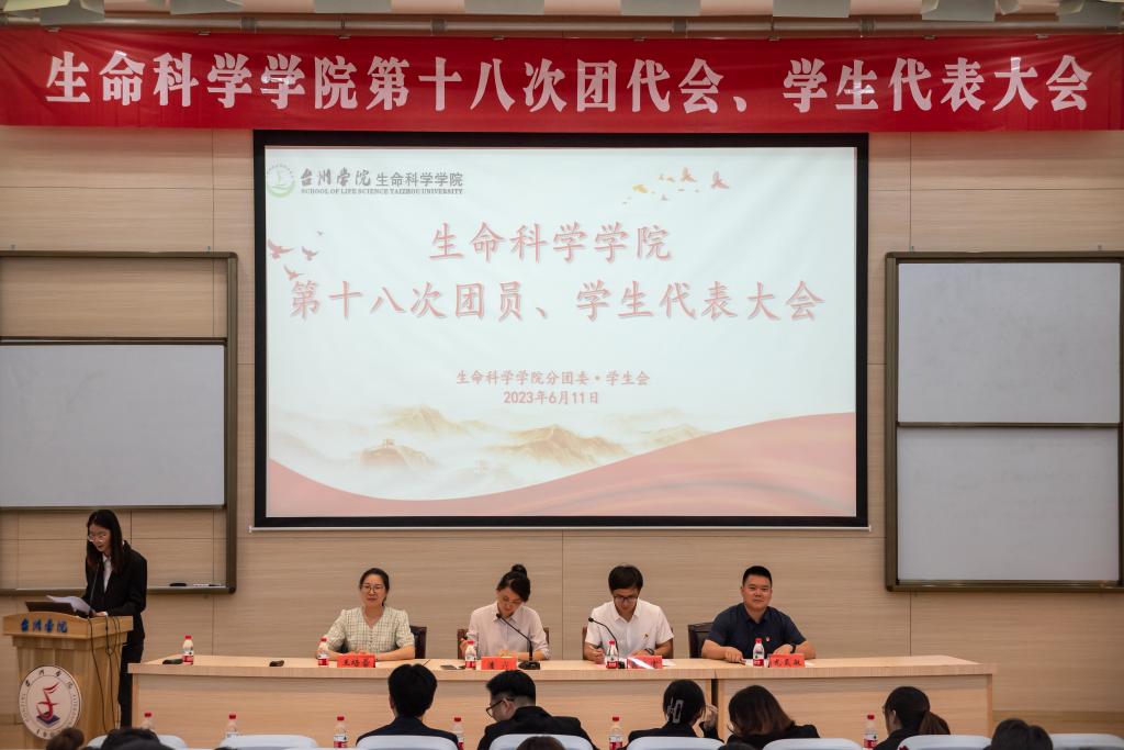 6月11日,生命科学学院第十八次团员、学生代表大会在椒江校区学术报告厅举行。校团委书记潘垚应邀到会指导,生命科学学院党委副书记翁添富出席,学院辅导员、第十七届团学会成员及各班团员、学生代表参加大会。