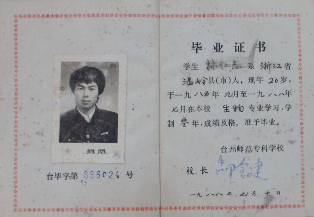 回忆起在台州师专短暂的三年学习时光,林老师坦言在当年的形势下,一切似乎都显得超自然和可接受,丝毫没有“艰苦”的感受,更不存在现如今“卷”的现象。那个迷你而陈旧的老校门,是叩问心灵的大门,走进去一看,校园小如麻雀,但教学楼、实验楼、图书馆、百米跑道等五脏俱全,至今都还质朴简陋地透着“旧气”,这就是已经是当时学校能给的全部。忆起当年的校园生活,酷爱运动的林老师神采飞扬地描述了以教学楼为中心的运动场地,广受欢迎的是羽毛球和排球,而霹雳舞、交谊舞等文艺风也比较盛行,印象最深刻的无疑是在动物生理实验师中解剖兔子的尖叫声和天台华顶山辨认植物的欢笑声,最大的幸福是在校学习期间吃住全免、毕业工作包分配,也正因此,那时学业压力不大,“躺下”的现象倒是不少见。访谈中,林老师回忆道,所幸那时有时任班主任金则新老师(原台州学院院长)的鞭策和鼓舞,让他笃定学习目标和方向,始终保持成绩优异,积极参与学生活动和工作,成为了全面发展的优秀毕业生。