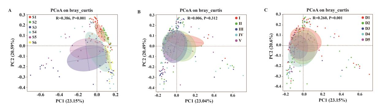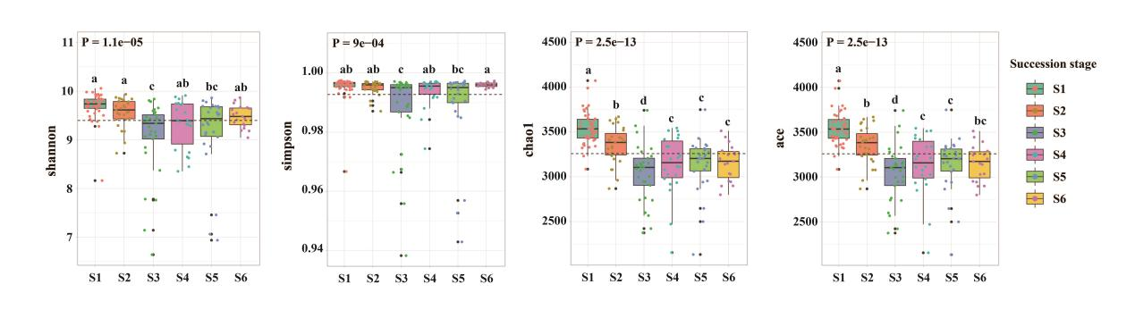 粗木质残体作为森林生态系统的基本组成之一,在保育土壤微生物多样性方面具有重要的功能。次生演替的发生使森林处于不同演替状态,导致粗木质残体的腐烂等级和径级丰富多样,使其孕育的细菌群落和功能类群也随之发生变化,但尚为得到充分研究。因此,本文基于川西亚高山天然次级演替森林平台,选取6个(高灌林、阔叶林、混交林、中龄林、成熟林和过熟林)处于不同演替阶段的森林,分析不同腐烂等级和径级的粗木质残体下土壤细菌群落组成和功能类群差异。研究发现,森林演替和粗木质残体腐烂等级显著改变土壤细菌群落结构,但在不同径级下变化不明显。土壤细菌群落α多样性随演替下降,在不同腐烂等级和径级下没有显著差异。群落组成方面,变形菌门和酸杆菌门是所有土壤中的优势类群,它们的相对丰度随着演替而变化。功能类群方面,化学异养和有氧化学异养是所有土壤中的优势功能类群;重要的是,固氮作用相关的群落和功能类群大量富集在更高腐烂等级的倒木下。相关性分析发现,土壤全氮含量和碳氮比是影响固氮相关细菌群落的关键负调控因子,而土壤温度正调控、粗木质残体储量负调控倒木下土壤细菌群落的组成和功能。综上所述,不同演替阶段森林中不同直径和腐烂程度的粗木质残体具有独特的细菌门和属,固氮菌与高度腐烂的倒木具有更高的关联性,可能表明森林生态系统中更长久的粗木质残体的存在可以刺激生态系统固氮。