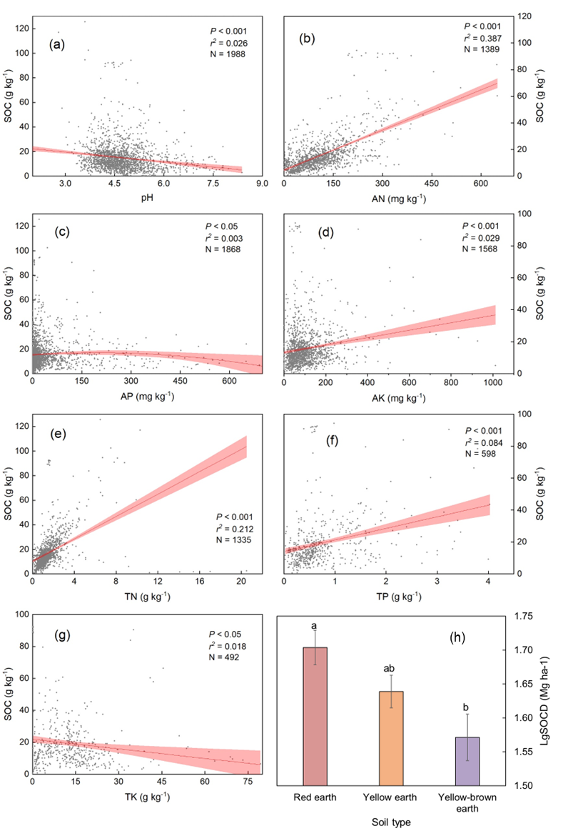 图4 土壤类型和养分含量对茶园土壤有机碳含量的影响