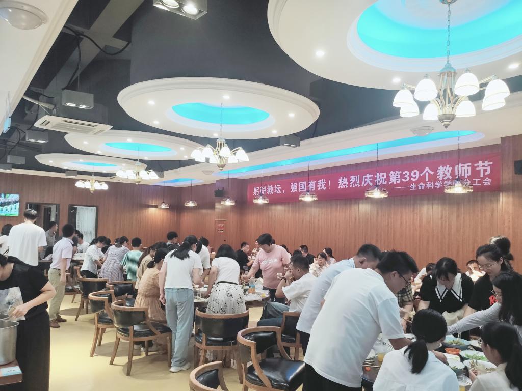 学期伊始,为庆祝我国第39个教师节,营造学院团结友爱、温馨和谐的氛围,进一步增强学院教职工的凝聚力和向心力,9月3日晚,生命科学学院分工会在教工餐厅举行“躬耕教坛,强国有我!热烈庆祝第39个教师节”包食饼筒活动。学院全体党政领导班子出席,近百名教职工参加活动。