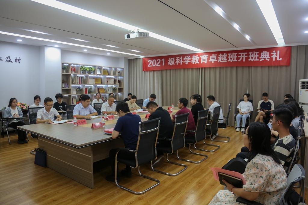 在师生交流互动环节,三位校外特聘导师结合自己的成长历程,引导学生自己寻找答案,解决疑惑,并鼓励学生在校期间应该树立目标、珍惜时间、广泛阅读、积极实践等,打好扎实的学科基础。与会人员分享了前两期卓越班的教学管理经验及育人成果,并对2021级科学教育卓越班同学寄予厚望与期待。学生代表张渲表示,他们会加倍珍惜卓越班的学习机会,通过理论学习和实践活动相结合,不断提高自身的综合素质,为推动科学教育的发展贡献自己的力量。