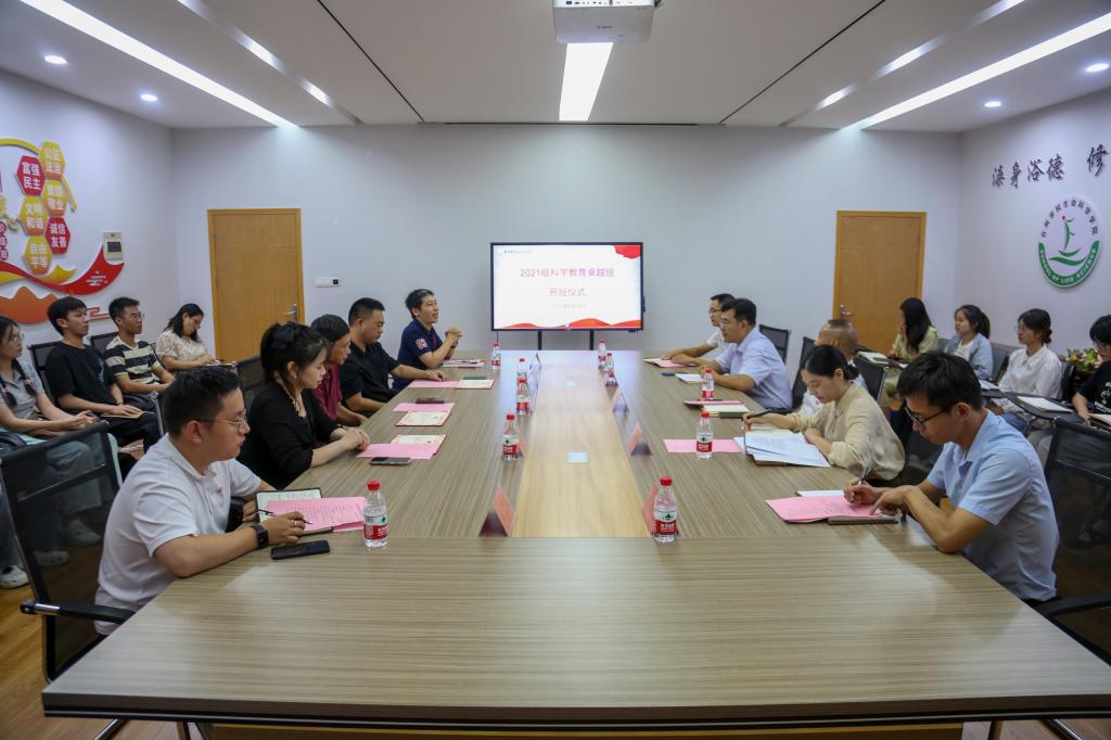 9月14日下午,我校2021级科学教育卓越班开班典礼在生命科学学院D470会议室举行。校教务处副处长张燕,生命科学学院党委书记杨启富、党委副书记翁添富出席;浙江省特级教师、台州市白云中学正高级教师颜伟云,台州市教坛新秀、椒江区教学名师、台州市学院路小学副校长杨周辉,椒江区教学名师、台州市学院路小学教师发展处副主任赵笑敏应邀指导;生命科学学院科学教育系主任、卓越班班主任钱海锋,专任教师贺建东,卓越班辅导员程子良及21级科学教育卓越班全体学生参加;生命科学学院副院长齐鑫主持开班典礼。