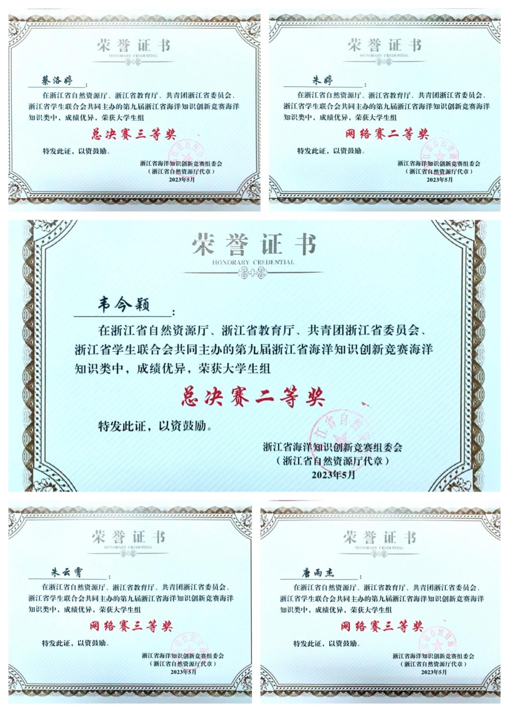 本届竞赛由浙江省自然资源厅、浙江省教育厅、共青团浙江省委和浙江省学联主办。竞赛围绕“保护海洋,人与自然和谐共生”主题,分设海洋知识类与海洋科技创新类两个竞赛类别。自启动以来,校团委高度重视、精心组织、广泛宣传,吸引了全校近千名学生参与省级网络赛、校级选拔赛,经前期层层选拔,遴选来自生命学院20级科学教育专业韦今颖、蔡洛婷两名同学代表学校参加半决赛。总决赛设“极速60秒”“出奇制胜”“抢先出击”三个环节,韦今颖才思敏捷、劈波斩浪,最终斩获二等奖,充分展示了我校大学生良好的综合素质和积极向上的精神面貌。