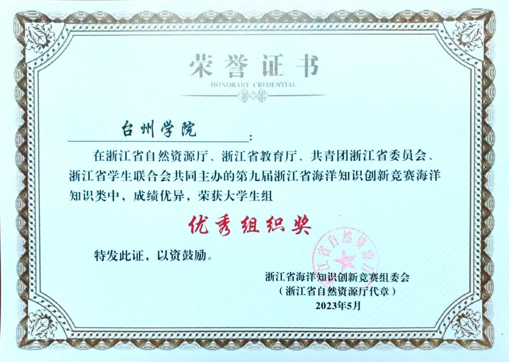 近日,第九届浙江省海洋知识创新竞赛海洋知识类竞赛总决赛在浙江海洋大学圆满落幕。我校生命科学学院20级科学教育专业韦今颖、蔡洛婷同学分别喜获总决赛二等奖、三等奖,20级科学教育专业朱婷等同学获网络赛二等奖3项、三等奖5项,学校荣获“优秀组织奖”,指导教师翁添富获“优秀指导教师奖”。