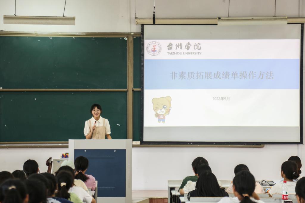 为了使2023级新生更快适应校园生活、参加校园活动、更清楚地了解自己的学分情况,9月27日中午,生命科学学院在2-303、2-305开展“非专业素质拓展成绩单”培训会。本次培训会面向全体2023级新生分两场进行,生命学院分团委书记李莎莎出席,生命团学会办公室干部虞灵婕和杨巨航主讲。