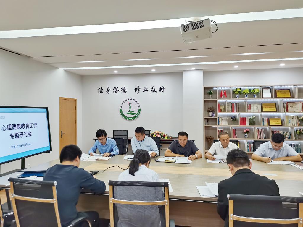 10月16日上午, 生命科学学院召开党政联席会议,专题研究2023年下半年学生心理健康工作。学院党政班子成员、各专业辅导员参加会议,会议由学院党委副书记翁添富主持。