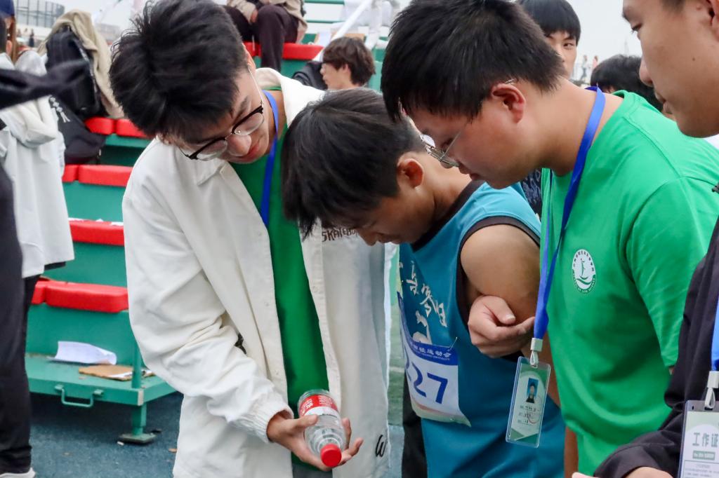 本次运动会的顺利举行离不开每一个工作人员的辛苦付出。在操场上,除了全力拼搏的运动健儿外,我院志愿者的身影也随处可见,他们默默付出的身影是操场上又一道亮丽的风景线。生命团学会的成员们在幕后从前期准备到召开,团结合作,齐心协力,为运动会顺利进行提供了有力的保障。看台上同学们一声声的“加油!生命最棒!”带动了激动兴奋的比赛气氛,增强了生命运动员们的信心与勇气。