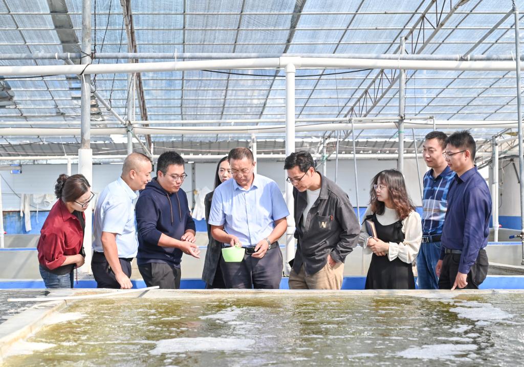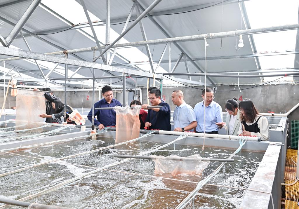 在三门东航水产育苗科技有限公司总经理王杰陪同下,赵凯一行实地考察公司育苗车间、亲贝保种池、澡种间、藻类车间等生产养殖基地,详细了解公司生产运行情况。在公司科技楼与青蟹繁创中心建设现场,赵凯认真听取王杰关于公司未来转型升级、智能化育苗养殖、种苗规模化繁育等方面发展规划的介绍,对东航水产的研发能力和战略目标高度赞赏。他表示,生命科学学院坚决贯彻校党委决策部署,充分发挥学院人才优势,为三门县海水养殖产业优化升级提供智力支持和科技服务。希望今后能够与东航水产在良种繁育、绿色养殖、水产病虫害防治等方面深化产学研合作,进一步提高科研成果转化,助推三门海水养殖业高质量发展。