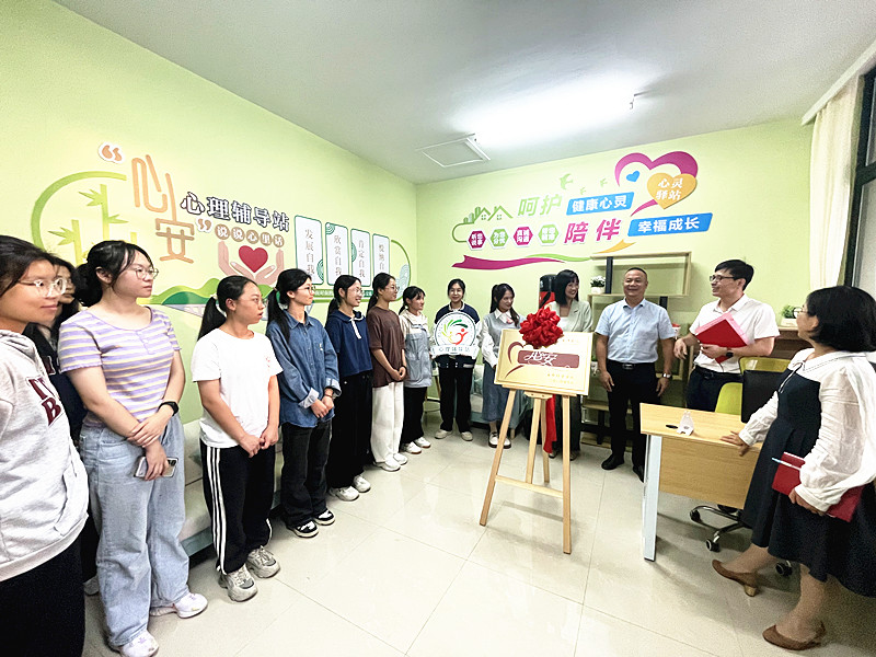 会上,杨启富、王蕴瑾,翁添富、22科学教育3班洪纯丽同学分别共同为“心安”心理辅导站和LOGO揭牌,在LOGO设计大赛颁奖仪式后,全体师生还一同参观了“心安”心理辅导站。