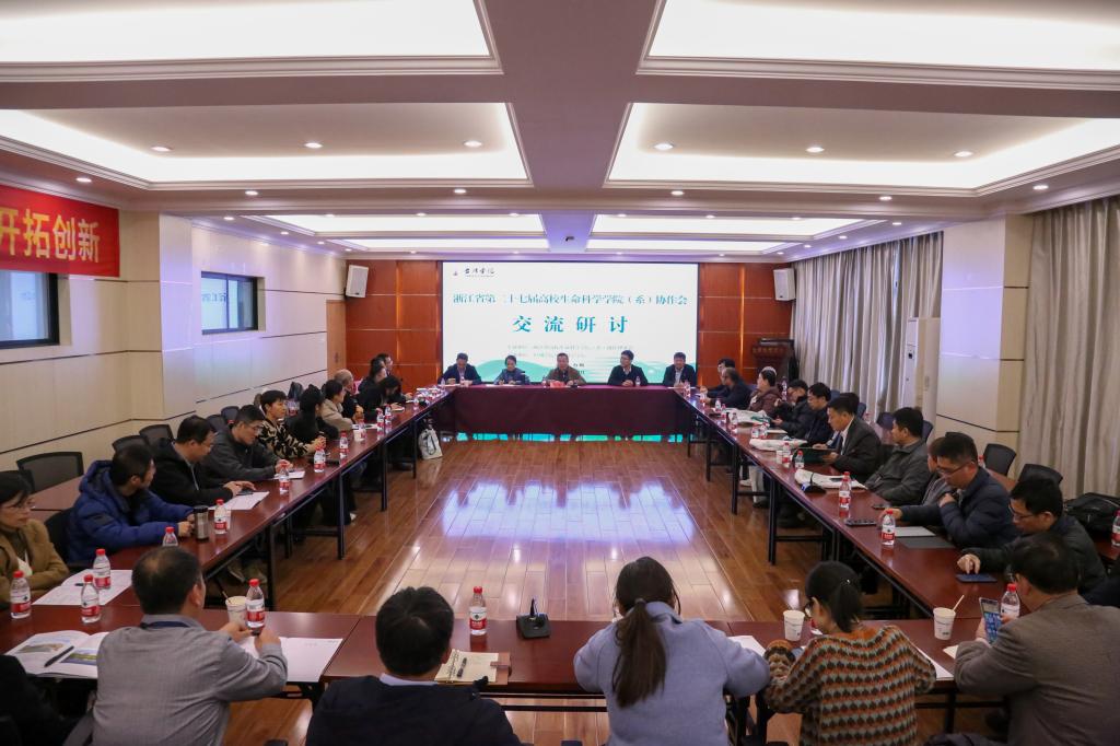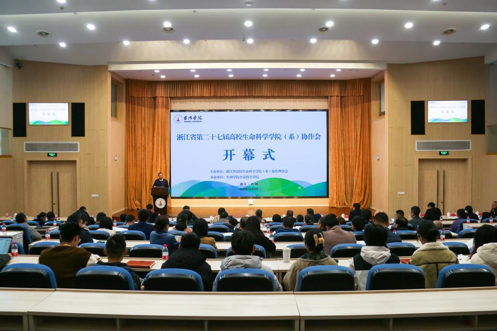 12月2日,浙江省第二十七届高校生命科学院(系)协作会在我校国际会议厅隆重举行。校党委委员、副校长李钧敏,教育部高校大学生物学课程教学指导委员会副主任委员、浙江大学吴敏教授,浙江省高校生命科学学院(系)协作会理事长、浙江农林大学黄坚钦教授应邀出席开幕式并致辞。来自浙江省28所高校50余位生命科学院(系)负责人和我校生命科学学院部分师生参加会议。会议由生命科学学院院长赵凯教授主持。