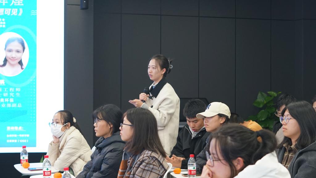 在互动提问环节,倪双双、陈瑛就环保行业发展前景、职业素养、学历提升、考级考证、职业规划等话题与同学们展开深入探讨,针对同学们的困惑悉心解答,为同学们未来的发展提供宝贵经验借鉴,并勉励大家要不断学习,实现自我价值。现场气氛热烈,参会同学受益匪浅。