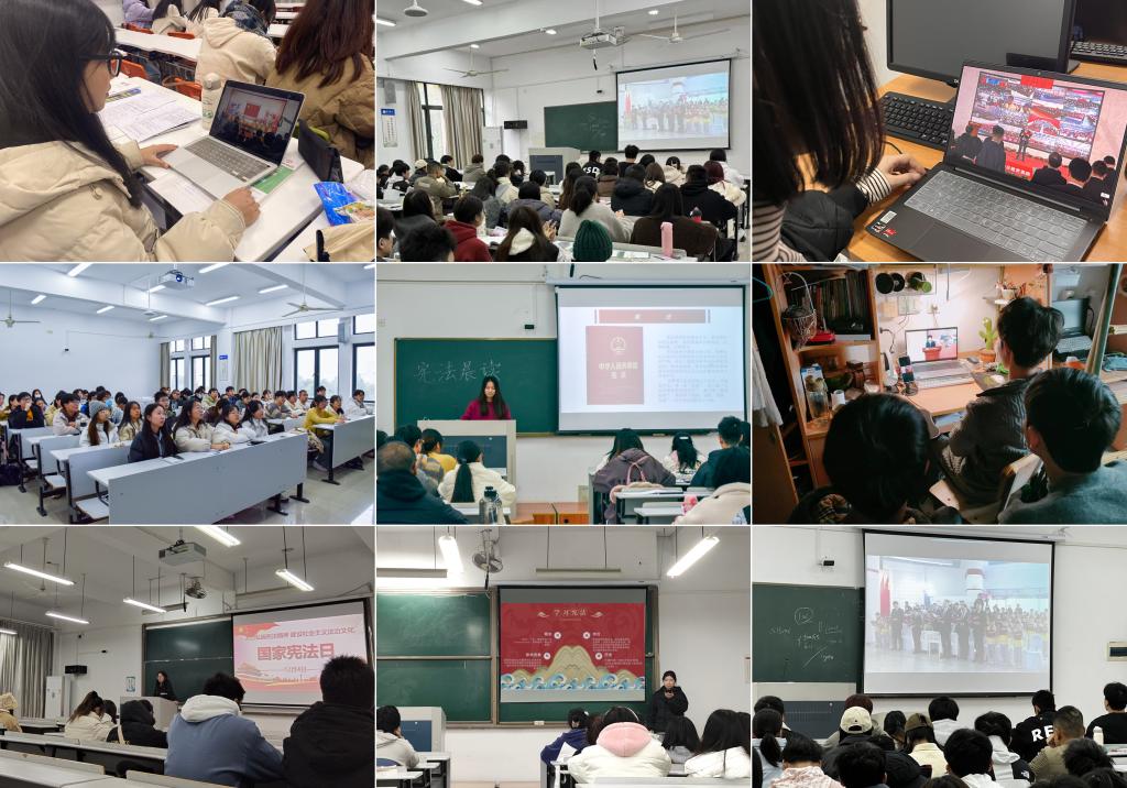 在学院党员之家,学生党员代表通过全国青少年普法网线上参加教育部组织开展的2023年国家宪法日教育系统“宪法晨读”活动。在庄严的国歌声过后,与会同学跟读由教育部领导领读的宪法条款,跟唱《宪法伴我们成长》,认真收看第八届全国学生“学宪法 讲宪法”活动全国总决赛演讲比赛优秀选手的现场展演和教育部领导讲话,整个会场庄严肃穆、秩序井然。学院各班级充分利用课余时间,结合主题班会、团日活动,因地制宜组织班级同学收看“宪法晨读”活动直播、学习宪法法律知识、传唱《宪法伴我们成长》歌曲,引导广大同学掌握宪法法律知识、树立宪法法律意识、养成遵法守法习惯,为建设法治社会贡献青春力量。