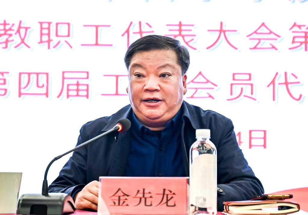 金先龙在致辞中代表学校党政向大会的隆重召开表示热烈的祝贺,他表示生命科学学院自成立以来,全体教职工与学校同心同德、同向同行,在学校的各项工作特别是今年本科教育教学审核评估工作中表现突出。他指出,双代会是学校民主管理的基本形式,是保障广大教职工行使民主权利,维护学校和教职工的利益,促进学科专业发展、学院事业发展的重要途径。他希望各位代表本着对学院改革发展高度负责的态度,认真审议大会报告,热烈讨论、群策群力,履行好代表职责、行使好代表权利;希望本次大会新选举产生的工会委员会在学院党委和学校工会的领导下,紧紧围绕中心工作和根本任务,充分发挥自身的特点和优势,做好团结联系师生、教育引导师生、服务帮助师生的各项工作,最大限度地调动全院师生的积极性和创造性,向着既定的目标努力前进。