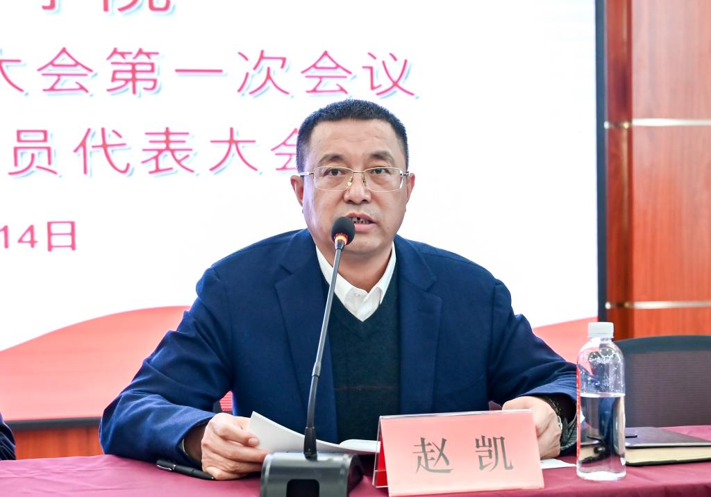 赵凯在工作报告中对学院第三届教职工代表大会以来的工作作了回顾,肯定学院在党建和思想政治工作、人才培养与专业建设、师资队伍建设、科学研究与学科建设、校地合作服务等方面的主要工作及成绩,同时分析了学院事业发展过程中存在的不足。报告提出了学院今后的努力方向,强调坚持以党建为引领,围绕立德树人根本任务,抢抓高等教育发展新机遇;坚持加强顶层设计,持续推进学科建设,高质量完成硕士点、博士点培育工作;坚持科教融合,夯实专业建设,聚焦标志性成果,全面提高教育教学质量;坚持“五育并举”,深化“三全育人”,持续提升人才培养质量和就业去向落实率;坚持加强学科团队建设,实现“人人进团队、人人有方向、人人有事干”的愿景,提升科研与社会服务能力。