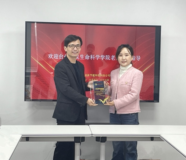 生命科学学院向台州市启辰节能环保科技有限公司颁发大学生职业发展联盟成员单位水晶牌