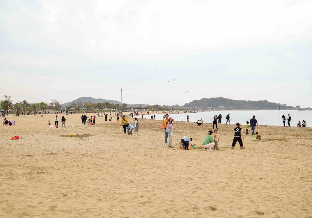午后,老师们继续前往有着“台州小三亚”之称的白沙湾海滨公园游玩。在湛蓝的天空、澄澈的海水、飞扬的海鸥、挺拔葱茏的棕榈树的映衬中,老师们走在细软的沙滩上,感受着海风的温柔吹拂,或是玩沙,或是戏水,或是围坐一起畅谈工作与生活,沙滩上充满了欢声笑语。