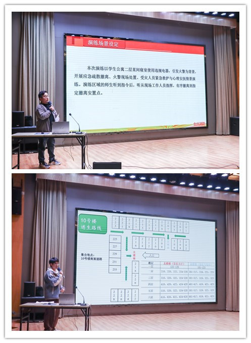 与会教师详细讲解火灾疏散逃生演练的注意事项和关键环节